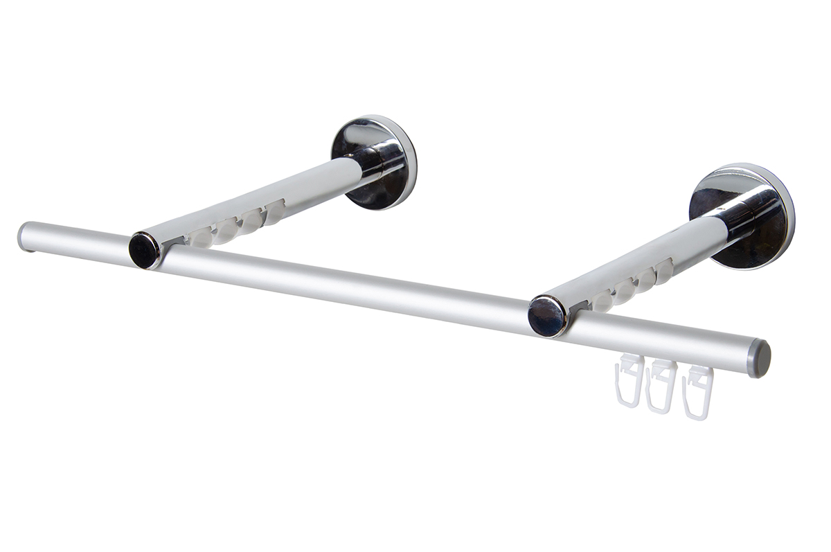 Карниз выполнен из металла и имеет лаконичную форму — это позволяет отнести его к ультра современному стилю Техно. Потолочный или стеновой кронштейн подходит для установки от 1 до 5 алюминиевых труб d16 мм и дает возможность экспериментировать с дизайном штор. Рекомендуемое количество кронштейнов — 1шт через каждые 1,5 метра карниза.