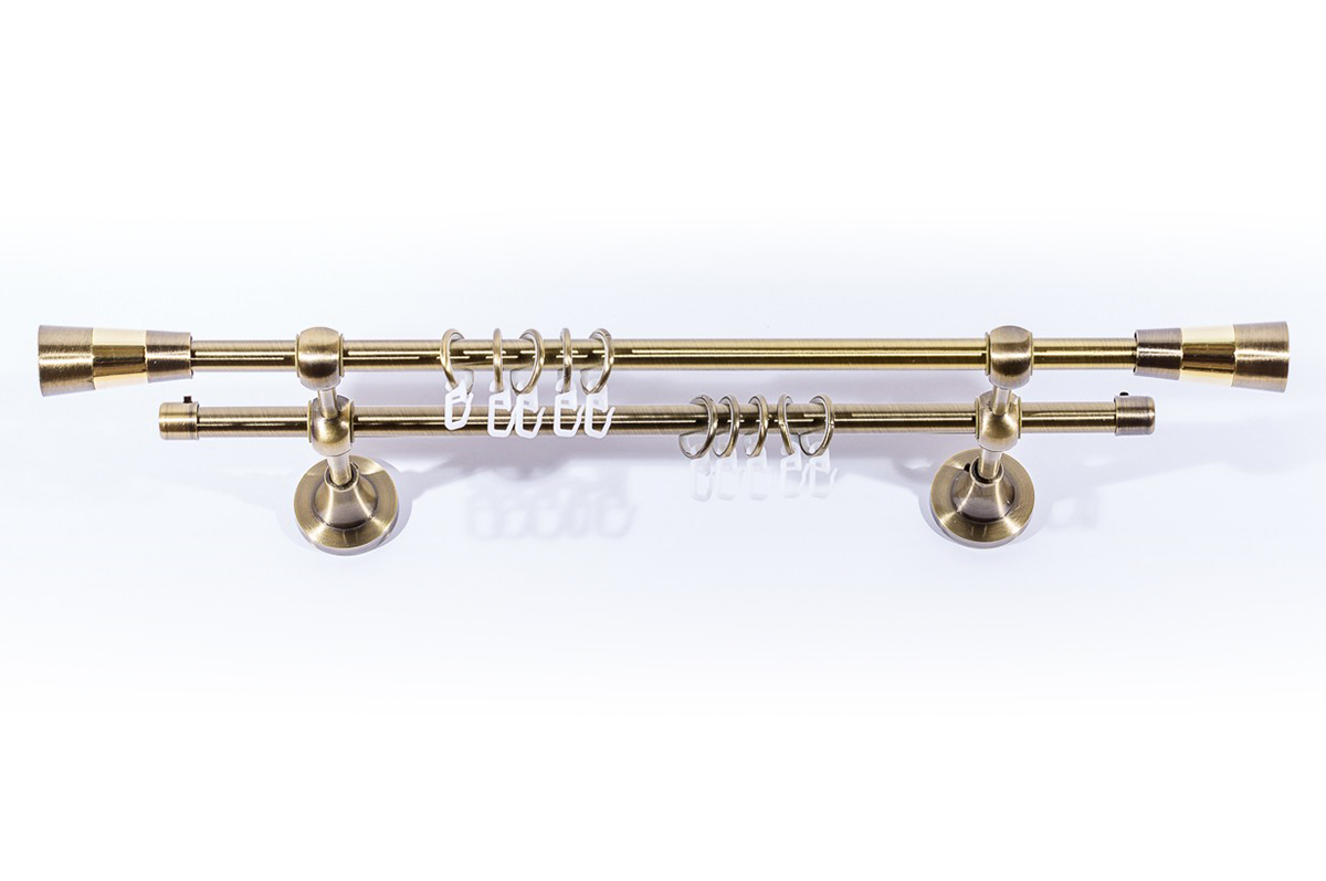 Главная / Каталог / Карнизы / Карнизы металлические для штор / Артметалл двухрядный d16 c наконечниками / Артметалл 2-рядный d16 c наконечниками Конус Старое золото (антик) 2400 мм