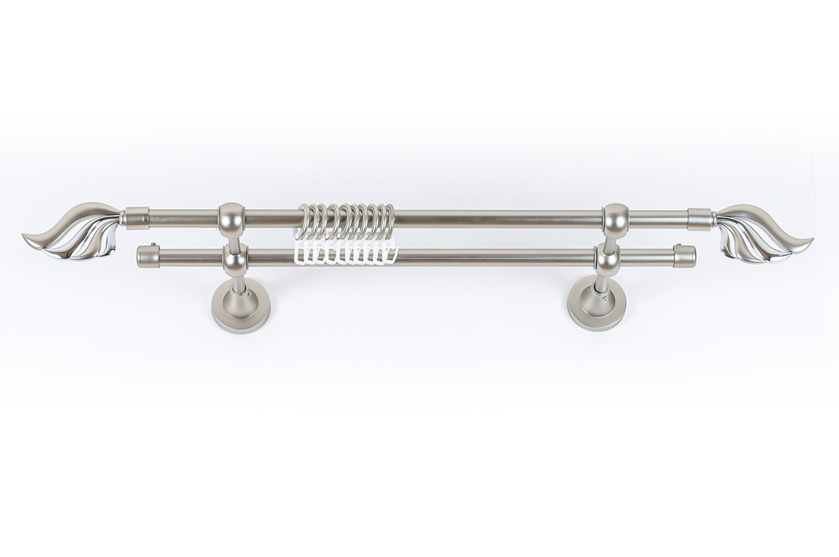 Главная / Каталог / Карнизы / Карнизы металлические для штор / Артметалл двухрядный d16 c наконечниками / Карниз кованый d 16 мм двойной Вингс Сатин 3000 мм