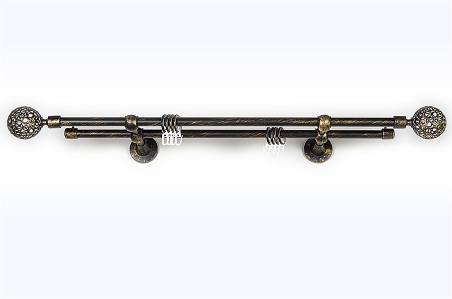 Главная / Каталог / Карнизы / Карнизы металлические для штор / Артметалл двухрядный d16 c наконечниками / Карниз Артметалл двухрядный d16 c наконечниками Ажур Коричневое золото 3400 мм
