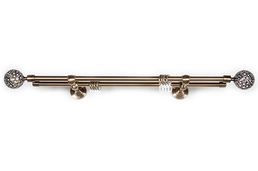 Главная / Каталог / Карнизы / Карнизы металлические для штор / Артметалл двухрядный d16 c наконечниками / Карниз Артметалл двухрядный d16 c наконечниками Ажур Старое золото (антик) 1600 мм