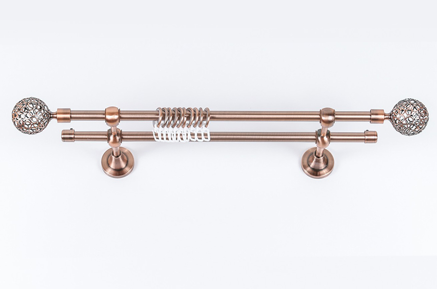 Главная / Каталог / Карнизы / Карнизы металлические для штор / Артметалл двухрядный d16 c наконечниками / Карниз Артметалл двухрядный d16 c наконечниками Ажур Медь 1600 мм