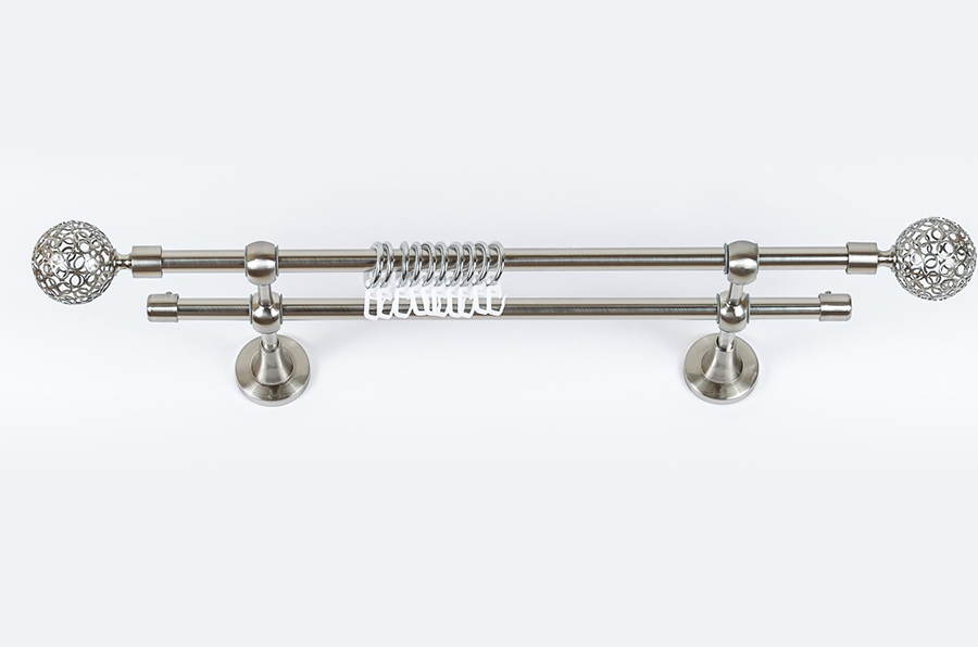 Главная / Каталог / Карнизы / Карнизы металлические для штор / Артметалл двухрядный d16 c наконечниками / Карниз Артметалл двухрядный d16 c наконечниками Ажур Нержавеющая сталь 3200 мм