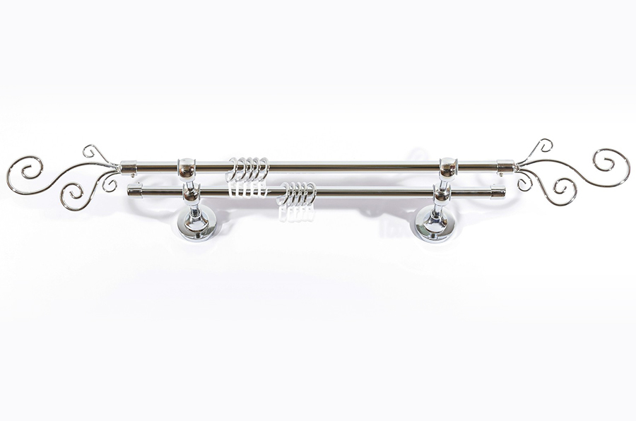 Главная / Каталог / Карнизы / Карнизы металлические для штор / Артметалл двухрядный d16 c наконечниками / Карниз Артметалл двухрядный d16 c наконечниками Завиток Серебро глянец 1600 мм