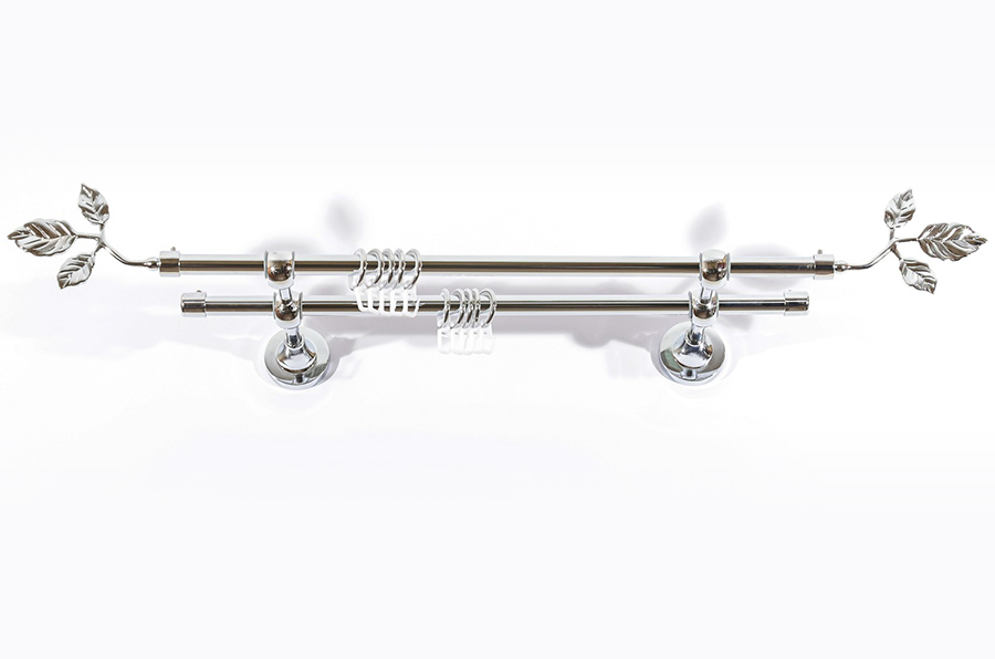Главная / Каталог / Карнизы / Карнизы металлические для штор / Артметалл двухрядный d16 c наконечниками / Карниз Артметалл двухрядный d16 c наконечниками Листок Серебро глянец 1600 мм