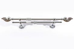 Компания «Магеллан» предлагает кованые карнизы с одной/двумя/тремя направляющими штанг, что позволяет использовать действительно оригинальные комбинации штор, тюлей и ламбрекенов. Особенно часто с нашими металлическими карнизами используют массивные, тяжелые ткани (парча, бархат, шелк), идеально гармонирующие с кованой поверхностью.