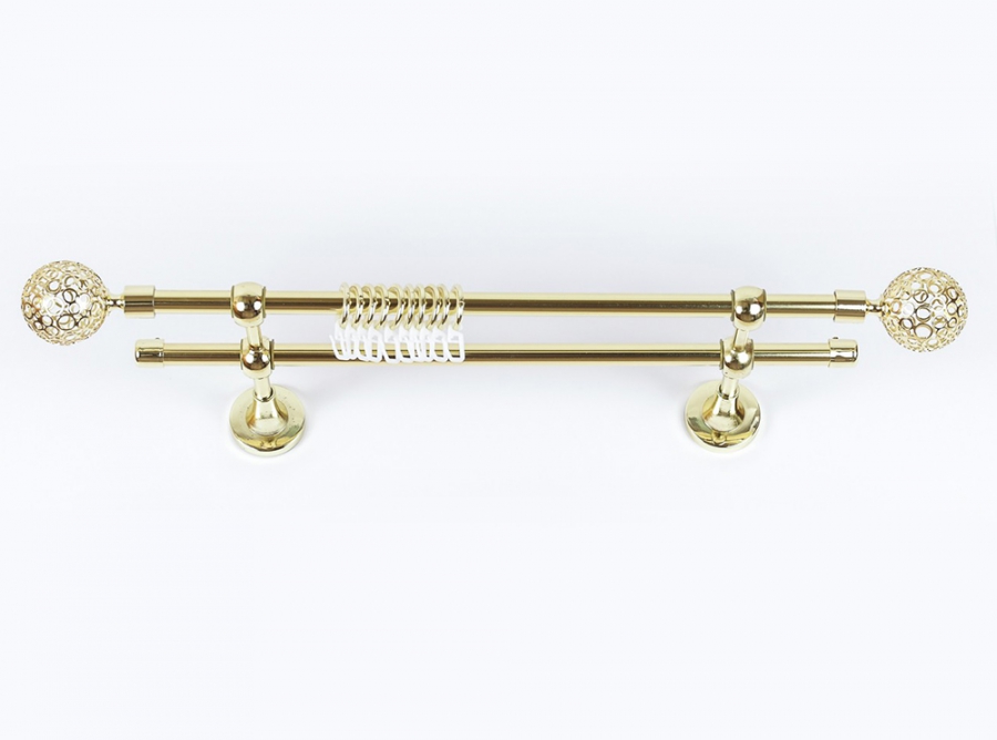Главная / Каталог / Карнизы / Карнизы металлические для штор / Артметалл двухрядный d16 c наконечниками / Карниз Артметалл двухрядный d16 c наконечниками Ажур Золото глянец 3200 мм