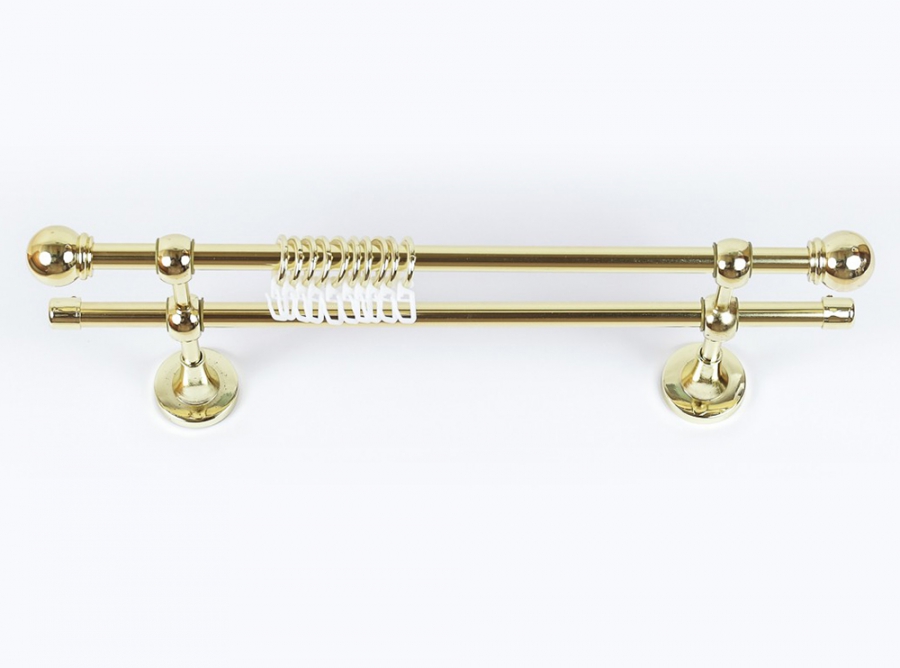 Главная / Каталог / Карнизы / Карнизы металлические для штор / Артметалл двухрядный d16 c наконечниками / Карниз Артметалл двухрядный Болонья Золото глянец 3200 мм