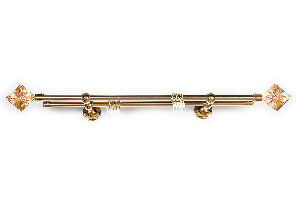 Главная / Каталог / Карнизы / Карнизы металлические для штор / Артметалл двухрядный d16 c наконечниками / Карниз Артметалл двухрядный d16, Бриллиантовая роса Золото глянец 1600 мм