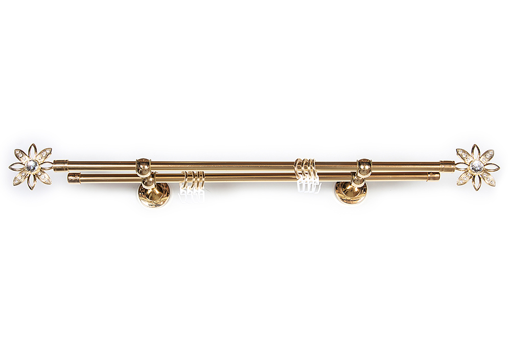 Главная / Каталог / Карнизы / Карнизы металлические для штор / Артметалл двухрядный d16 c наконечниками / Карниз Артметалл двухрядный d16, Бриллиантовый лист Золото глянец 1600 мм