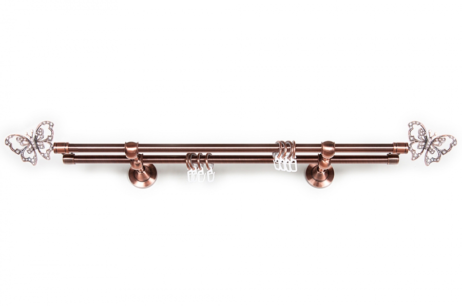 Главная / Каталог / Карнизы / Карнизы металлические для штор / Артметалл двухрядный d16 c наконечниками / Карниз Артметалл двухрядный d16, Бабочка de lux Медь 3200 мм
