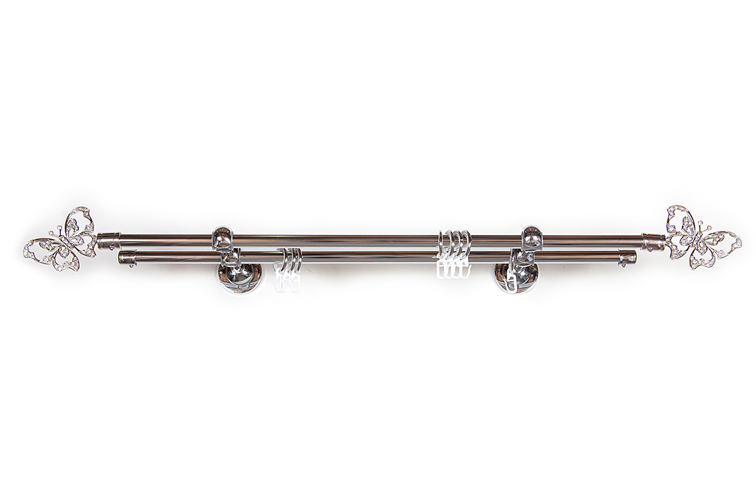 Главная / Каталог / Карнизы / Карнизы металлические для штор / Артметалл двухрядный d16 c наконечниками / Карниз Артметалл двухрядный d16, Бабочка de lux Серебро глянец 2000 мм