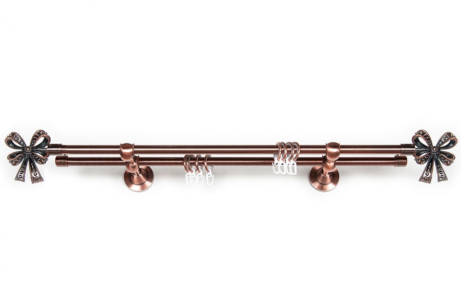 Главная / Каталог / Карнизы / Карнизы металлические для штор / Артметалл двухрядный d16 c наконечниками / Карниз Артметалл двухрядный d16 c наконечниками Бант Медь 3200 мм