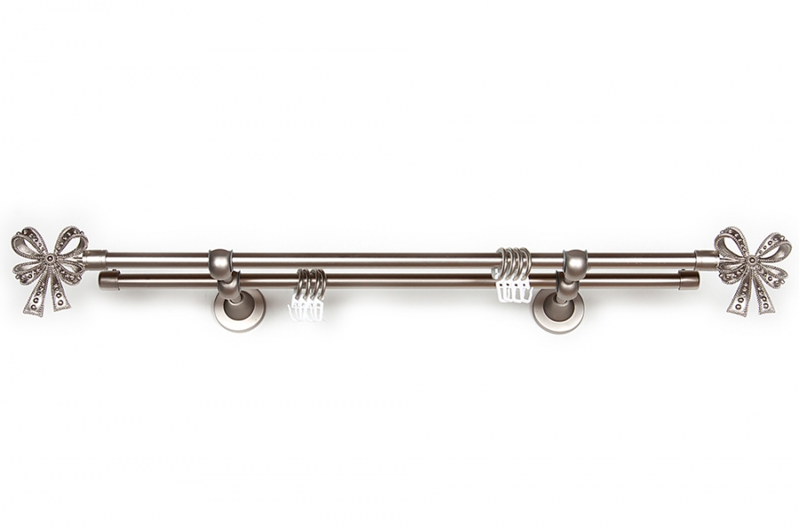 Главная / Каталог / Карнизы / Карнизы металлические для штор / Артметалл двухрядный d16 c наконечниками / Карниз Артметалл двухрядный d16 c наконечниками Бант Сатин 1600 мм
