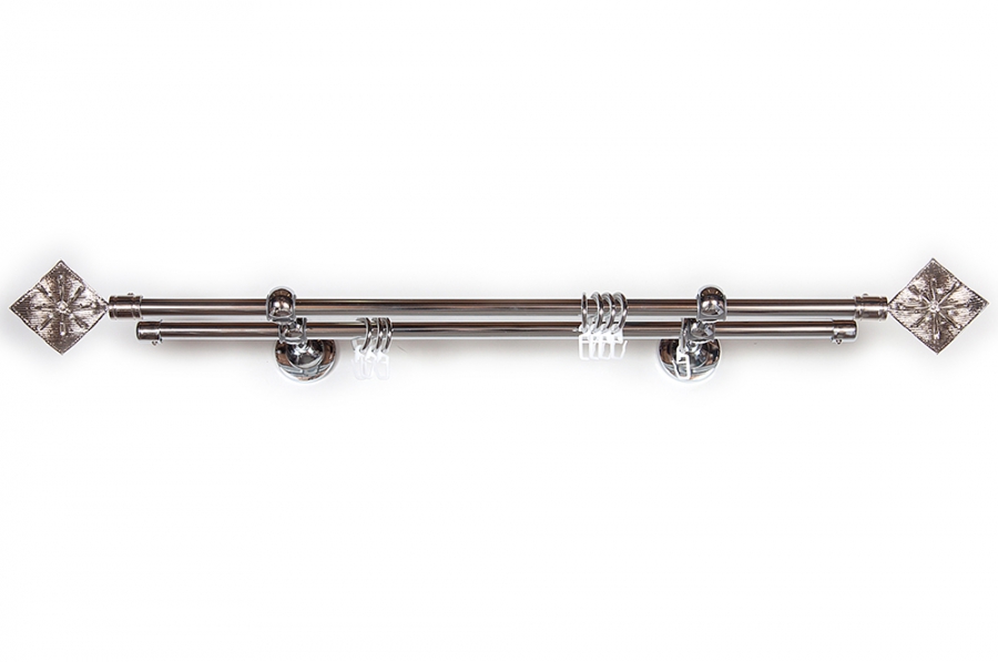 Главная / Каталог / Карнизы / Карнизы металлические для штор / Артметалл двухрядный d16 c наконечниками / Карниз Артметалл двухрядный d16, Бриллиантовая роса Серебро глянец 3000 мм