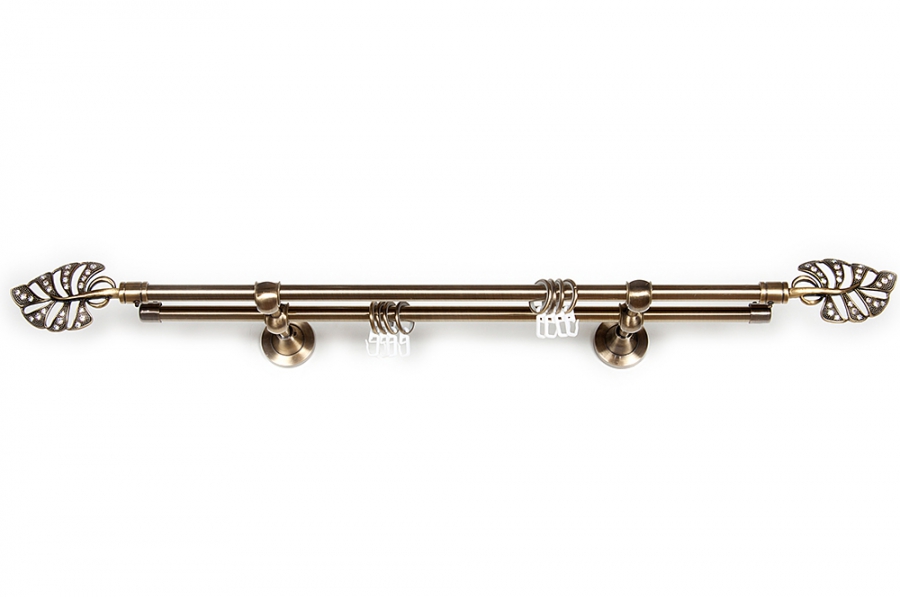 Главная / Каталог / Карнизы / Карнизы металлические для штор / Артметалл двухрядный d16 c наконечниками / Карниз Артметалл двухрядный d16, Бриллиантовый лист Старое золото (антик) 1800 мм