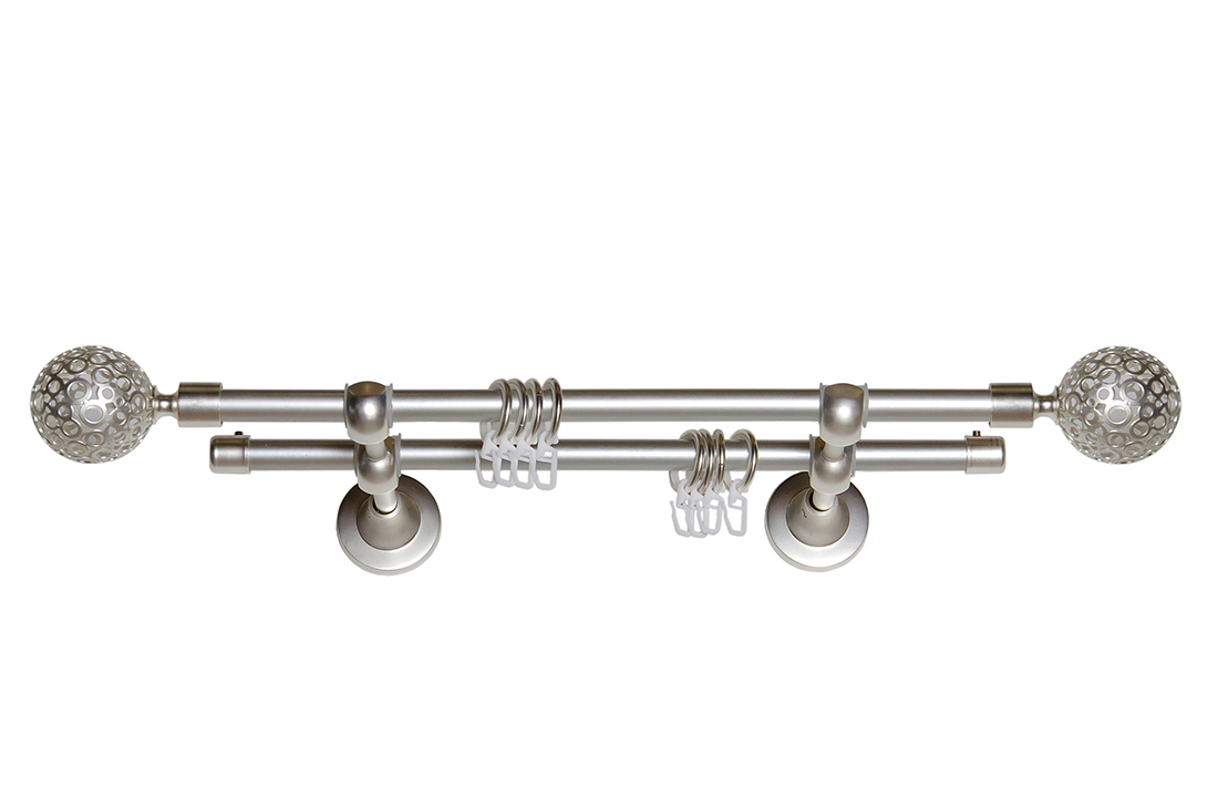 Главная / Каталог / Карнизы / Карнизы металлические для штор / Артметалл двухрядный d16 c наконечниками / Карниз Артметалл двухрядный d16 c наконечниками Ажур Платина