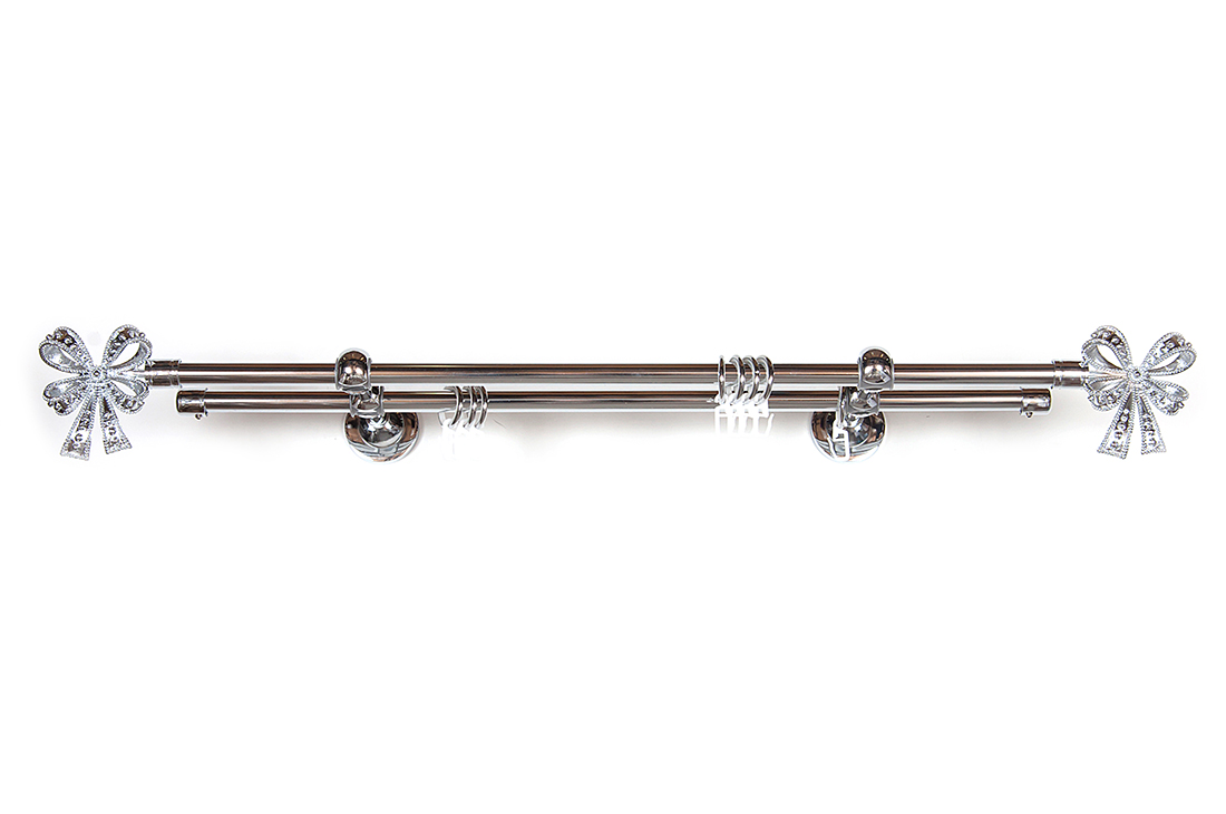 Главная / Каталог / Карнизы / Карнизы металлические для штор / Артметалл двухрядный d16 c наконечниками / Карниз Артметалл двухрядный d16 c наконечниками Бант Серебро глянец 2000 мм