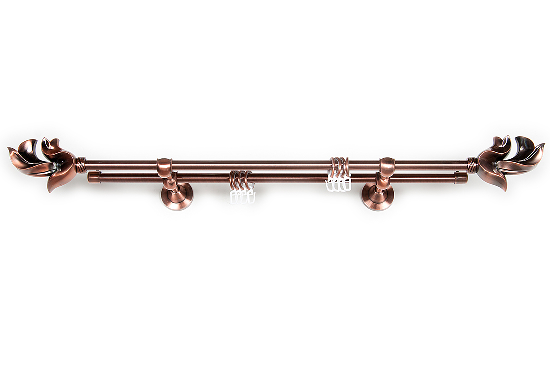 Главная / Каталог / Карнизы / Карнизы металлические для штор / Артметалл двухрядный d16 c наконечниками / Карниз Артметалл двухрядный d16 c наконечниками Факел Медь 2800 мм