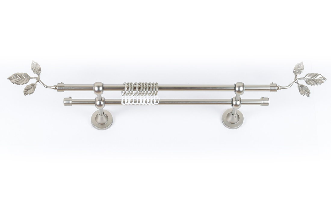 Главная / Каталог / Карнизы / Карнизы металлические для штор / Артметалл двухрядный d16 c наконечниками / Карниз Артметалл двухрядный d16 c наконечниками Листок Сатин 1800 мм