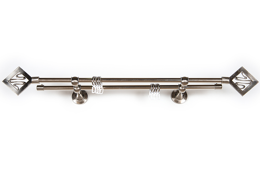 Главная / Каталог / Карнизы / Карнизы металлические для штор / Артметалл двухрядный d16 c наконечниками / Карниз Артметалл двухрядный d16 c наконечниками Ромб Нержавеющая сталь 3200 мм