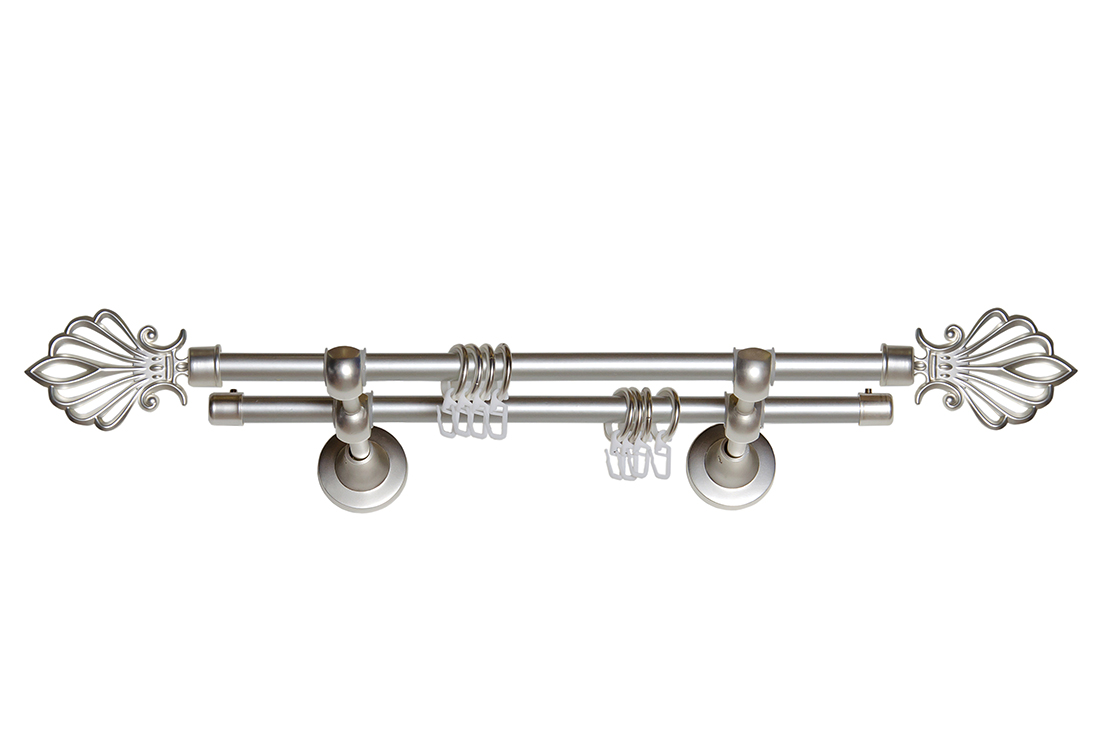 Главная / Каталог / Карнизы / Карнизы металлические для штор / Артметалл двухрядный d16 c наконечниками / Карниз Артметалл двухрядный d16 c наконечниками Веер Платина 3000 мм