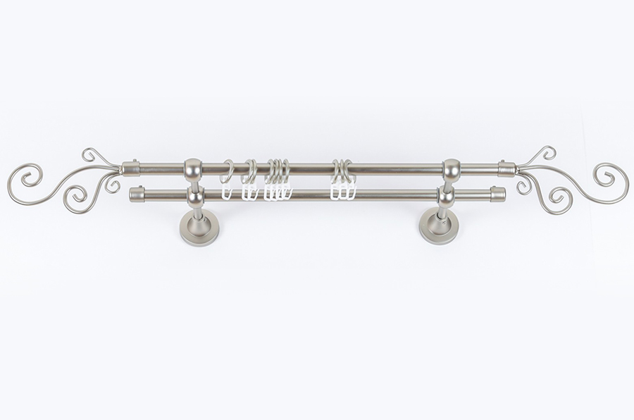 Главная / Каталог / Карнизы / Карнизы металлические для штор / Артметалл двухрядный d16 c наконечниками / Карниз Артметалл двухрядный d16 c наконечниками Завиток Сатин 2400 мм