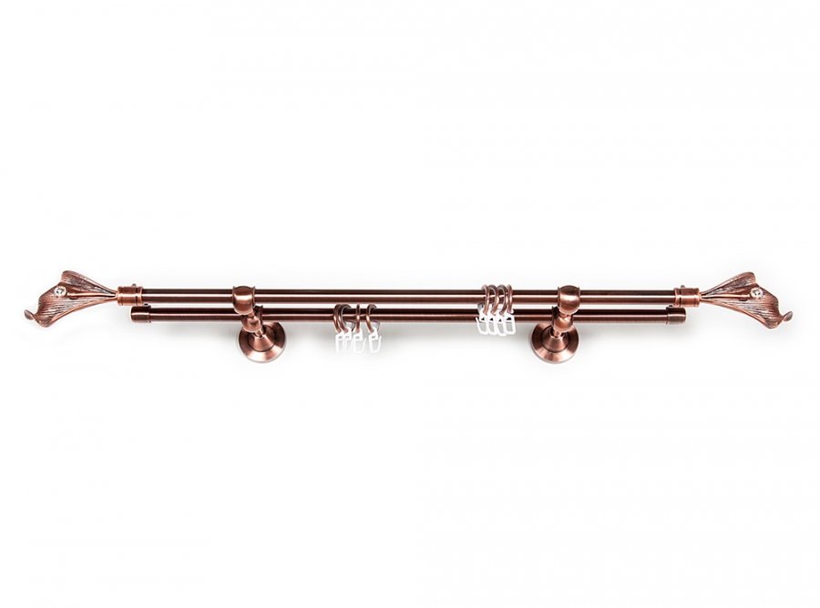 Главная / Каталог / Карнизы / Карнизы металлические для штор / Артметалл двухрядный d16 c наконечниками / Карниз Артметалл двухрядный d16, Цветок Медь 3400 мм
