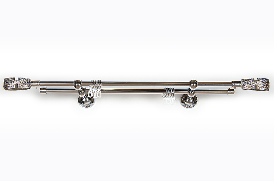 Главная / Каталог / Карнизы / Карнизы металлические для штор / Артметалл двухрядный d16 c наконечниками / Карниз Артметалл двухрядный d16, Лиенс Серебро глянец 2800 мм
