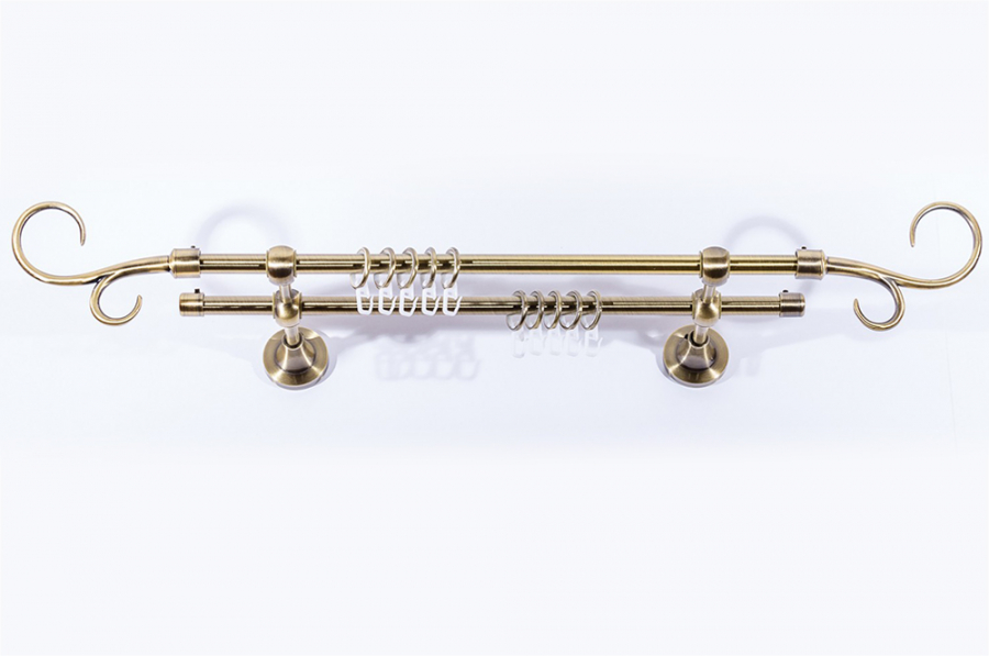 Главная / Каталог / Карнизы / Карнизы металлические для штор / Артметалл двухрядный d16 c наконечниками / Карниз Артметалл двухрядный d16 , Лоза Старое золото (антик) 3000 мм