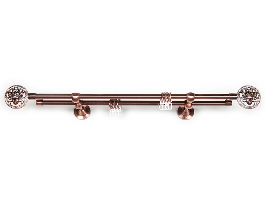 Главная / Каталог / Карнизы / Карнизы металлические для штор / Артметалл двухрядный d16 c наконечниками / Карниз Артметалл двухрядный d16, Медуза de lux Медь 3400 мм