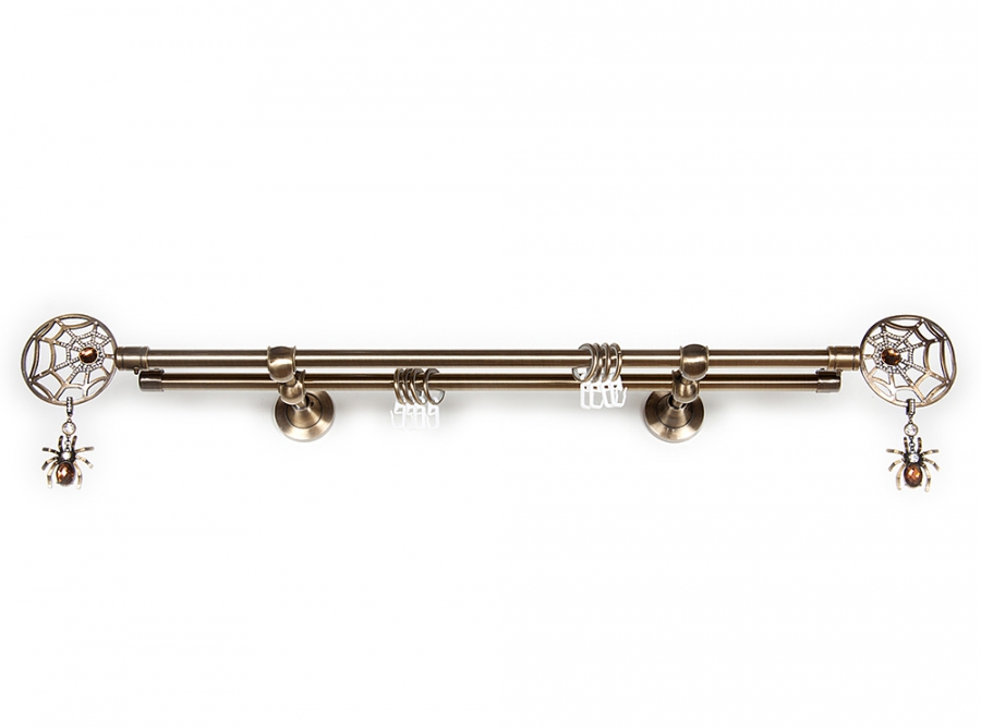 Главная / Каталог / Карнизы / Карнизы металлические для штор / Артметалл двухрядный d16 c наконечниками / Карниз Артметалл двухрядный d16, Паутинка Старое золото (антик) 3000 мм