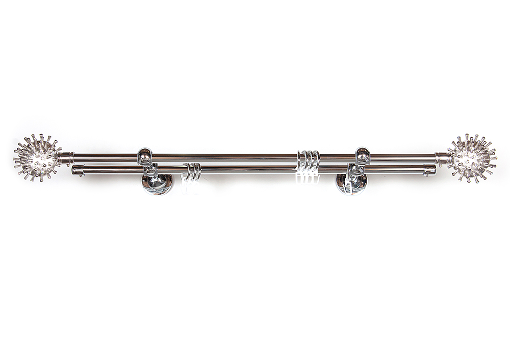 Главная / Каталог / Карнизы / Карнизы металлические для штор / Артметалл двухрядный d16 c наконечниками / Карниз Артметалл двухрядный, Эридан Серебро глянец 3400 мм