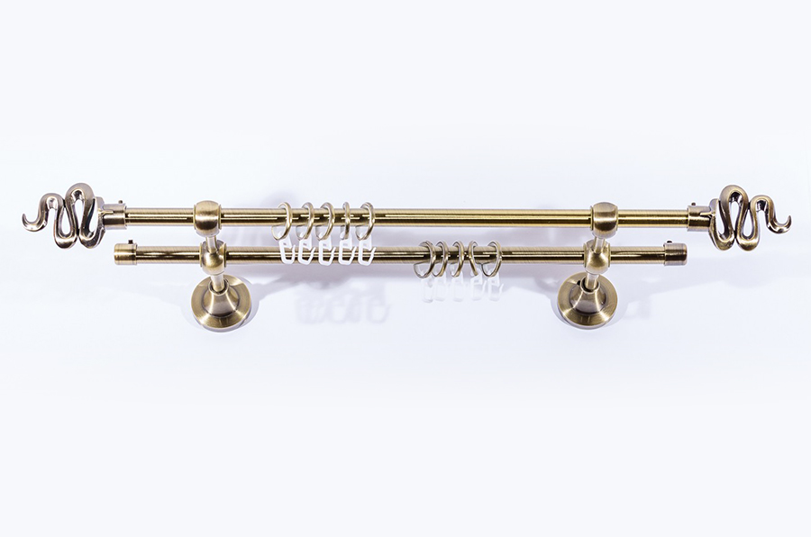Главная / Каталог / Карнизы / Карнизы металлические для штор / Артметалл двухрядный d16 c наконечниками / Карниз Артметалл двухрядный, Эскимо Старое золото (антик) 2000 мм
