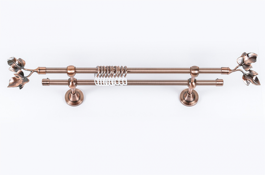Главная / Каталог / Карнизы / Карнизы металлические для штор / Артметалл двухрядный d16 c наконечниками / Карниз Артметалл двухрядный d16 c наконечниками Фиговый лист Медь 2000 мм
