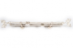 Компания «Магеллан» предлагает кованые карнизы с одной/двумя/тремя направляющими штанг, что позволяет использовать действительно оригинальные комбинации штор, тюлей и ламбрекенов. Особенно часто с нашими металлическими карнизами используют массивные, тяжелые ткани (парча, бархат, шелк), идеально гармонирующие с кованой поверхностью.