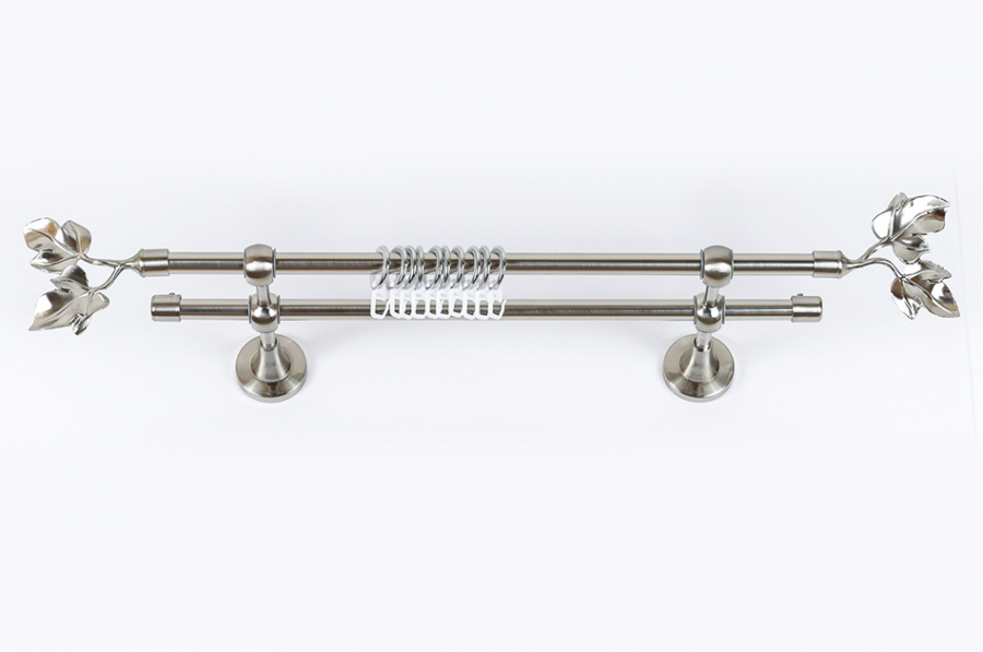 Главная / Каталог / Карнизы / Карнизы металлические для штор / Артметалл двухрядный d16 c наконечниками / Карниз Артметалл двухрядный d16 c наконечниками Фиговый лист Нержавеющая сталь 1800 мм