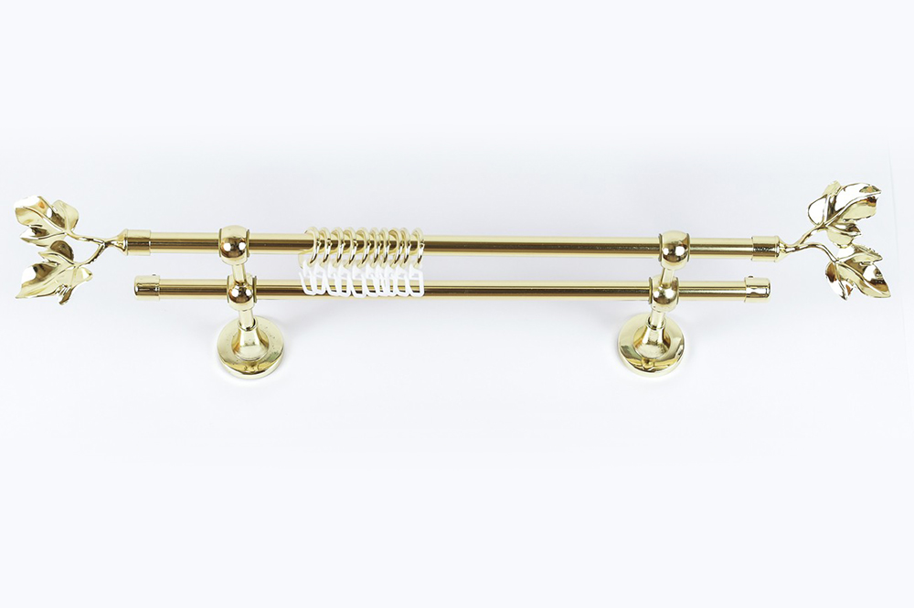 Главная / Каталог / Карнизы / Карнизы металлические для штор / Артметалл двухрядный d16 c наконечниками / Карниз Артметалл двухрядный d16 c наконечниками Фиговый лист Золото глянец 3000 мм