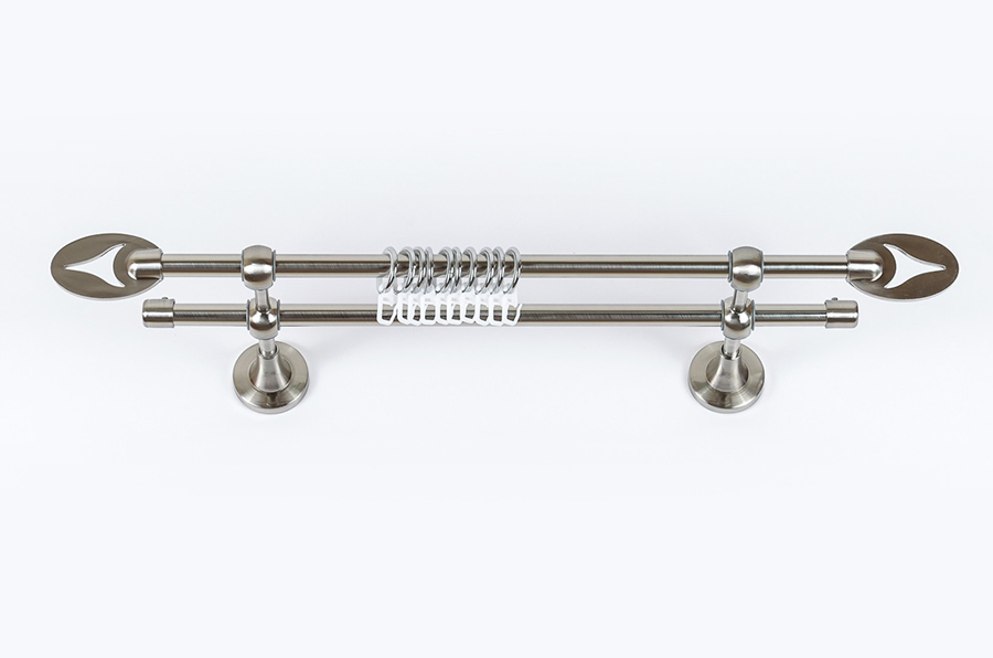 Главная / Каталог / Карнизы / Карнизы металлические для штор / Артметалл двухрядный d16 c наконечниками / Карниз Артметалл двухрядный, Кения Нержавеющая сталь 2800 мм