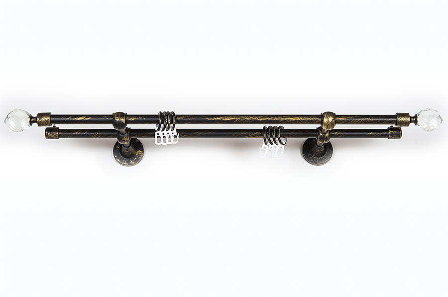 Главная / Каталог / Карнизы / Карнизы металлические для штор / Артметалл двухрядный d16 c наконечниками / Карниз Артметалл двухрядный d16 c наконечниками Кристалл Коричневое золото 1600 мм