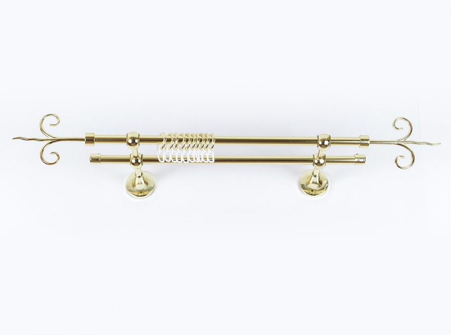 Главная / Каталог / Карнизы / Карнизы металлические для штор / Артметалл двухрядный d16 c наконечниками / Карниз Артметалл двухрядный d16 c наконечниками Лилия Золото глянец 1600 мм