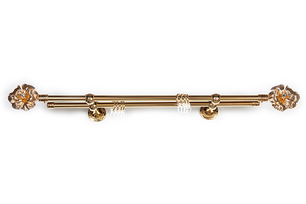 Главная / Каталог / Карнизы / Карнизы металлические для штор / Артметалл двухрядный d16 c наконечниками / Карниз Артметалл двухрядный d16, Мак Золото глянец 1600 мм