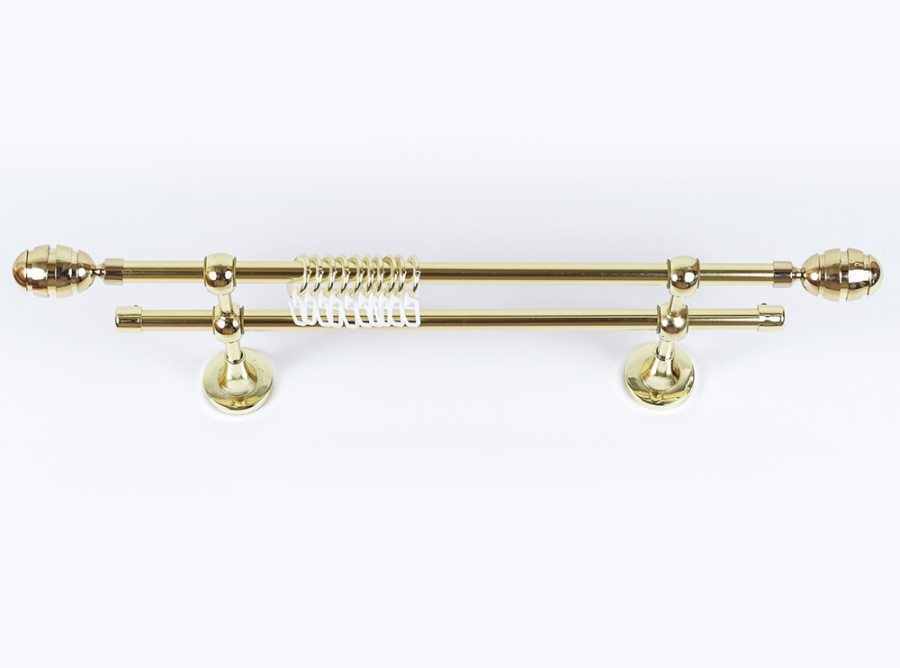 Главная / Каталог / Карнизы / Карнизы металлические для штор / Артметалл двухрядный d16 c наконечниками / Карниз Артметалл двухрядный d16 c наконечниками Орех Золото глянец 1800 мм