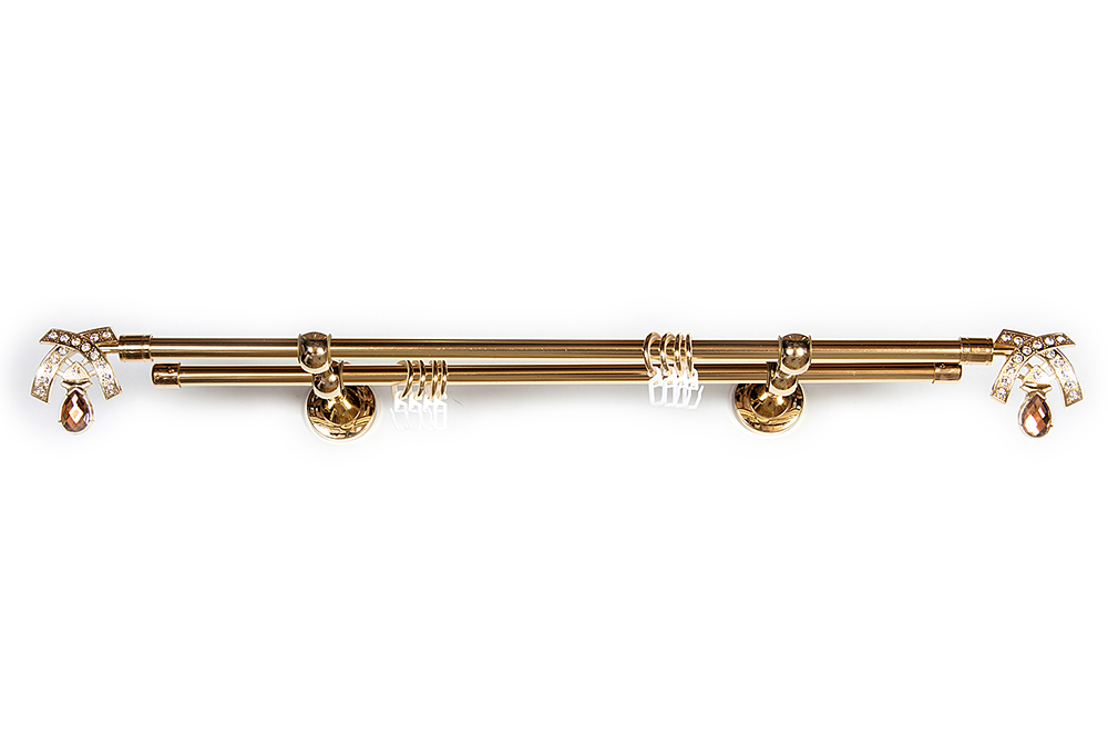 Главная / Каталог / Карнизы / Карнизы металлические для штор / Артметалл двухрядный d16 c наконечниками / Карниз Артметалл двухрядный d16, Подвеска Золото глянец 3400 мм