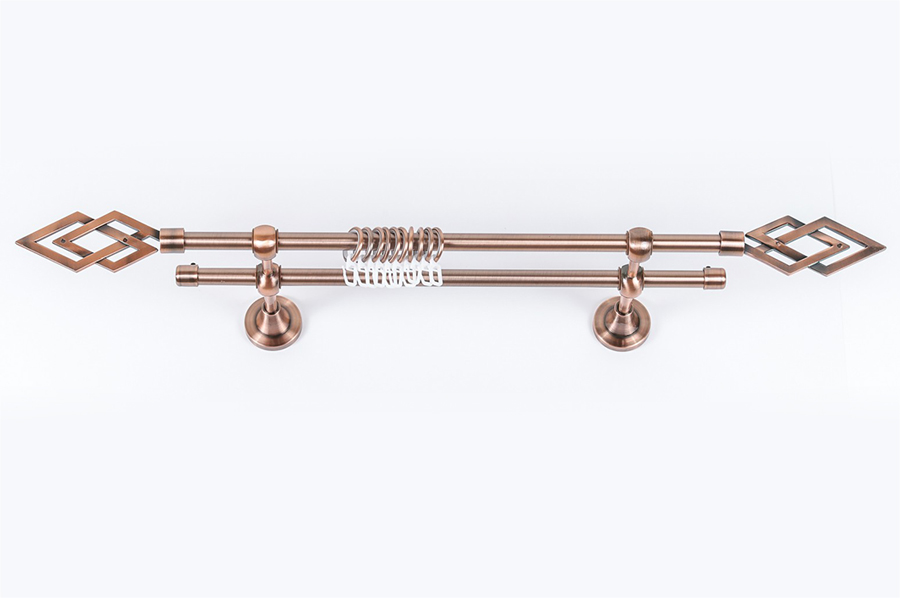 Главная / Каталог / Карнизы / Карнизы металлические для штор / Артметалл двухрядный d16 c наконечниками / Карниз Артметалл двухрядный d16 c наконечниками Викинг Медь 1600 мм