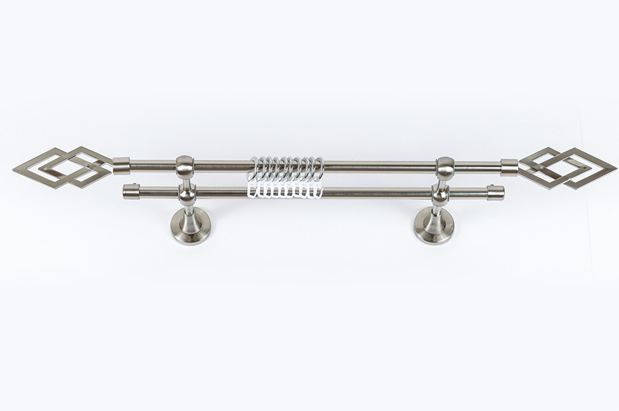Главная / Каталог / Карнизы / Карнизы металлические для штор / Артметалл двухрядный d16 c наконечниками / Карниз Артметалл двухрядный d16 c наконечниками Викинг Нержавеющая сталь 1600 мм