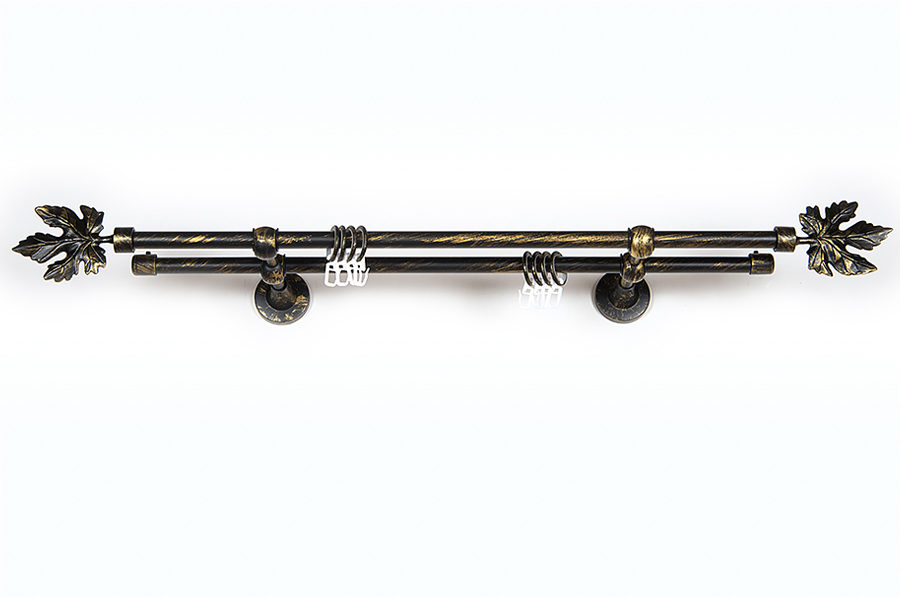 Главная / Каталог / Карнизы / Карнизы металлические для штор / Артметалл двухрядный d16 c наконечниками / Карниз Артметалл двухрядный d16 c наконечниками Виноградный лист Коричневое золото 3000 мм