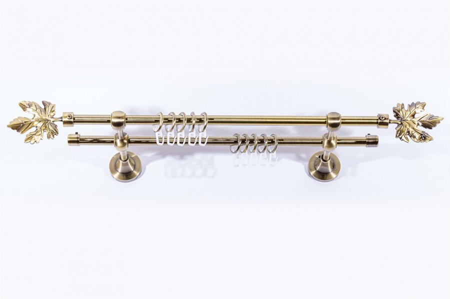 Карниз Артметалл двухрядный d16 c наконечниками Виноградный лист Старое золото (антик) 1600 мм купить в интернет-магазине Магеллан
