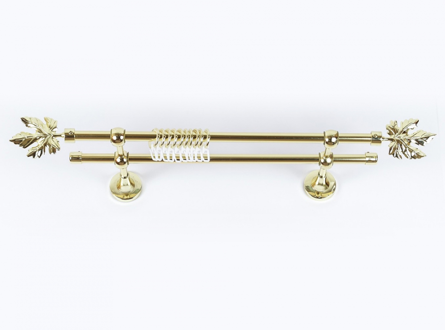 Главная / Каталог / Карнизы / Карнизы металлические для штор / Артметалл двухрядный d16 c наконечниками / Карниз Артметалл двухрядный d16 c наконечниками Виноградный лист Золото глянец 2800 мм