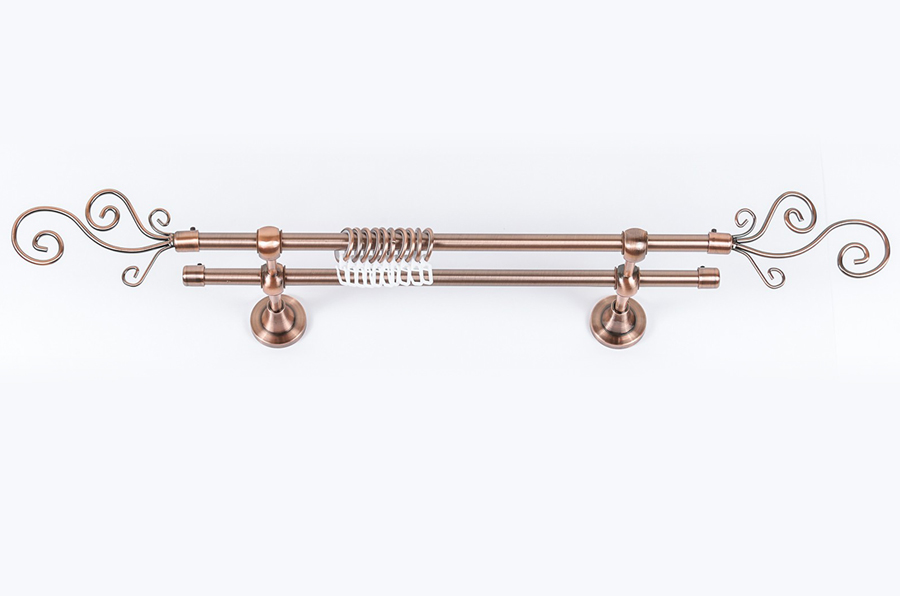 Главная / Каталог / Карнизы / Карнизы металлические для штор / Артметалл двухрядный d16 c наконечниками / Карниз Артметалл двухрядный d16 c наконечниками Завиток Медь 3000 мм
